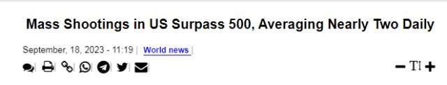 好意思国《国会山报》(The Hill)网站17日征引“枪支暴力档案”的数据发现,2023年到现在限度,好意思国发生的大领域枪击事件还是远高于2019年的414起以及2018年的335起。